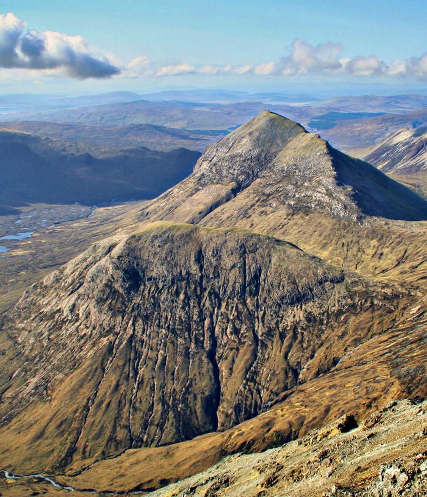 Charakterystyczna dla Helvellyn jest jego rozległa płaskowyżowa wierzchołkowa część, z której rozpościerają się zapierające dech w piersiach panoramy na otac-
