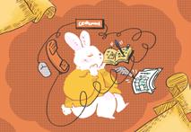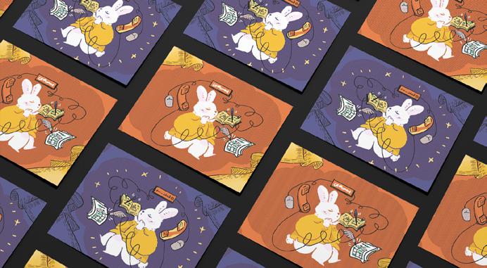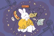 被筆記、行事曆、便利貼與電話線圍繞的兔子沈思著,呈現我們在日常生活中處理雜務、 整理思緒與記錄的時刻。整體氛圍療癒、親切,如同我們在壓力下仍不忘照顧自己。該作 品之後會以「在混亂中照顧自己」、「柔軟面對忙碌」等主題做延伸故事。