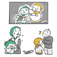 因此,我在圖文故事中呈現出慢飛天使使用圖卡 系統來進行溝通的畫面,也希望藉此傳遞「比起 假設而產生的誤解,觀察與心對心交流更能走進 人的心裡」給讀者。