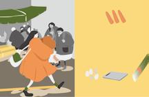 主要主角與「食物」以暖色調強調,帶動故事,同時讓讀者能夠關注故事主要人物的 互動與動作變化。