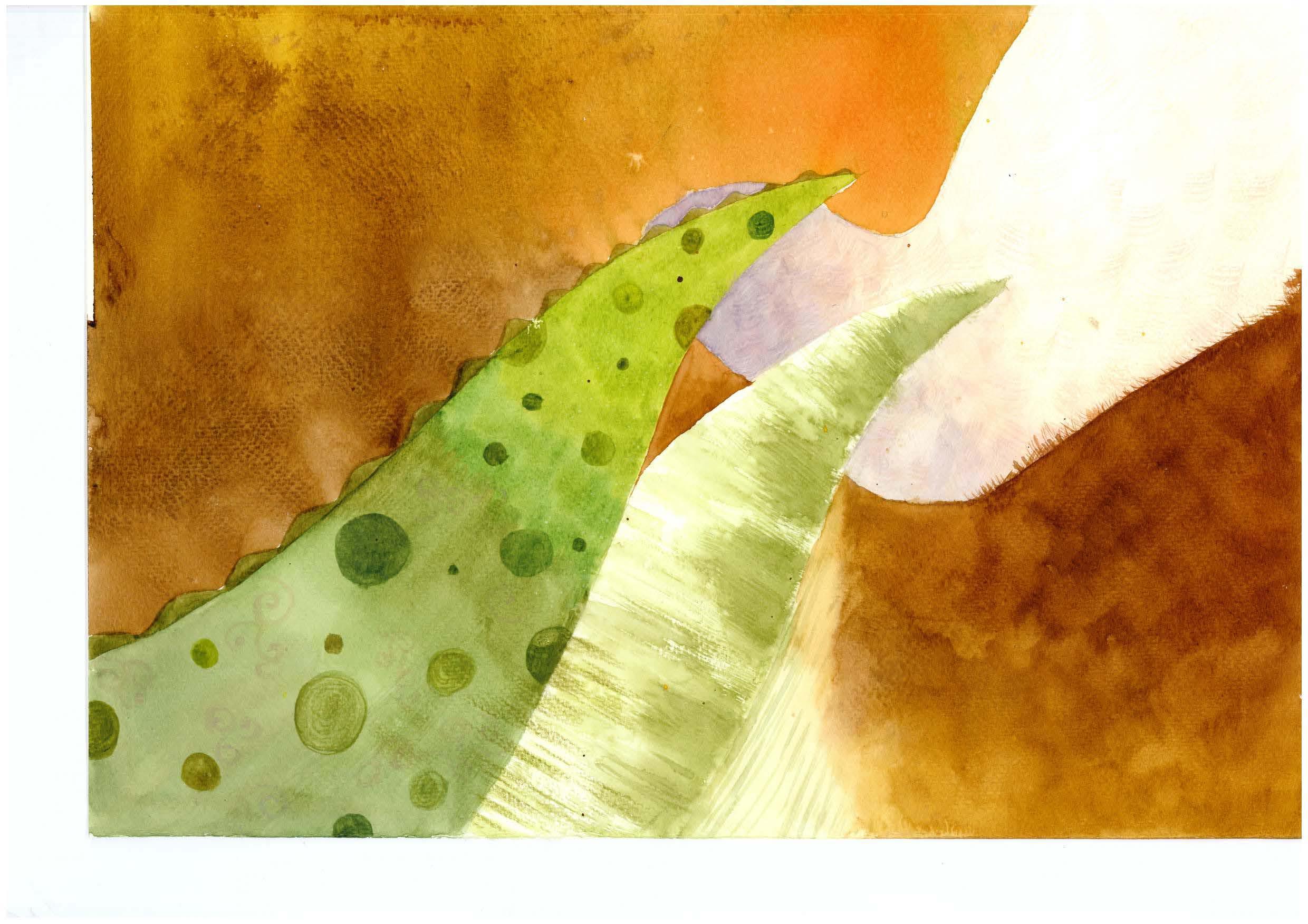 一條綠色巨大的長尾巴重重的甩 在波波的腿上 接著尾巴又再次的 往另一邊甩去