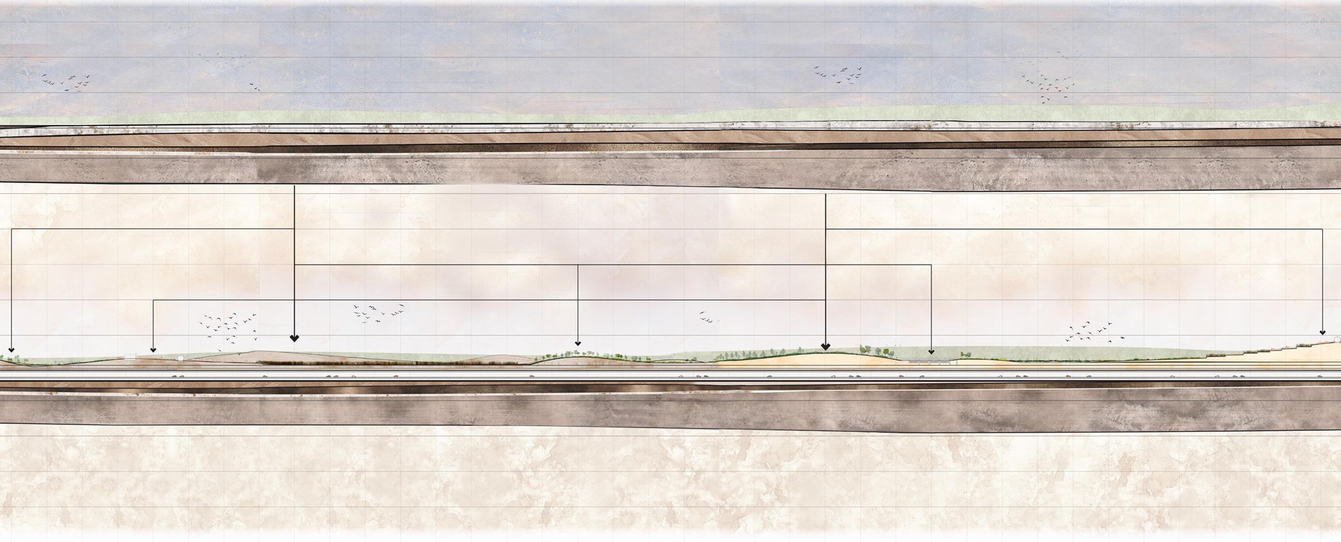 From Soil to Space is a project that I completed during my master’s studies at Harvard GSD. It investigates how major urban transportation infrastructure affects its surrounding areas and how spatial design can help improve them. This proposal examines how the A102, a massive underground highway excavation project in Antwerp, can impact the area vertically through a cut-and-fill strategy, as multiple kilometers of soil will need to be displaced. It proposes a landscape framework that moves and places soil strategically to create a variety of functions and topographies along the A102 highway.