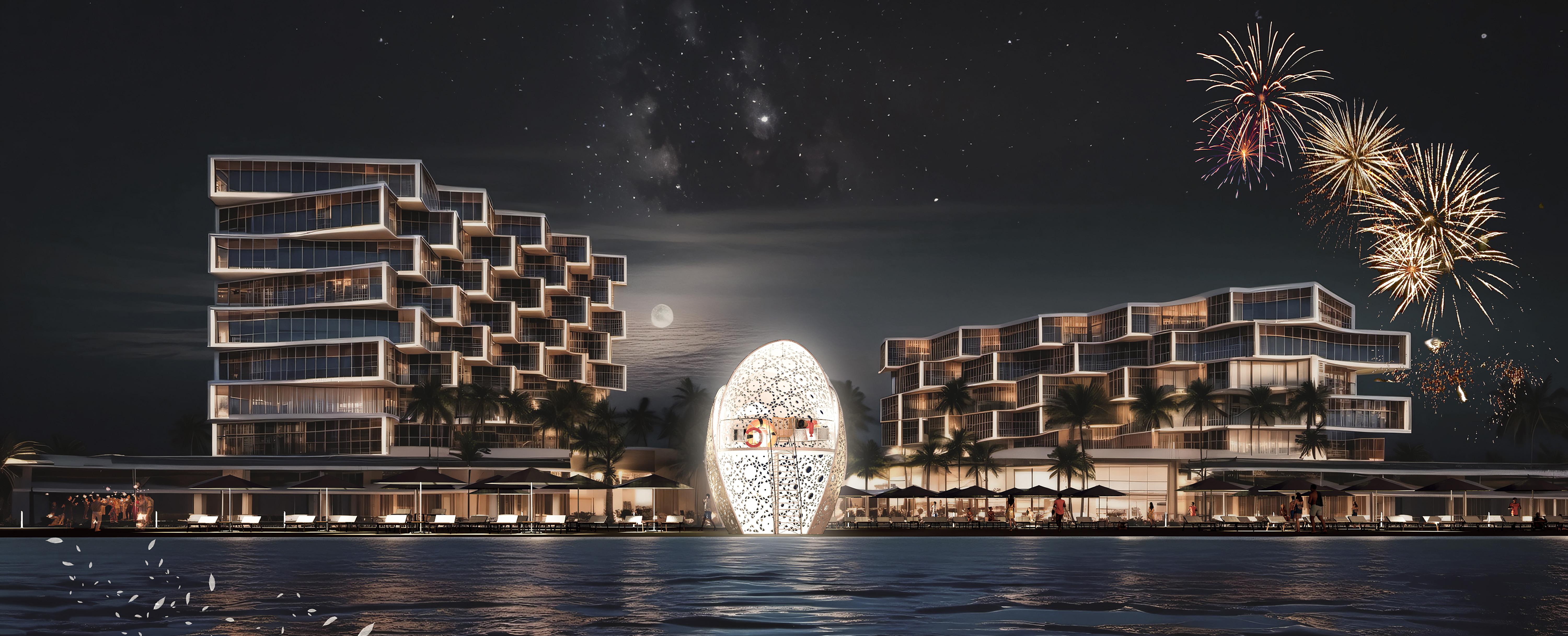 Beach Bloom is a personal professional project, a lifeguard tower on a UAE beach that draws inspiration from Arabic cultural motifs while using sustainability analysis to honor local conditions. The structure features two layers of semi-overlapping curved panels with Arabesque patterns that wrap occupants in shelter from the sun, informed by computational analysis of solar exposure and prevailing winds for natural cooling. The interior pays homage to muqarnas, a traditional Arabic architectural element, through a half-domed canopy.