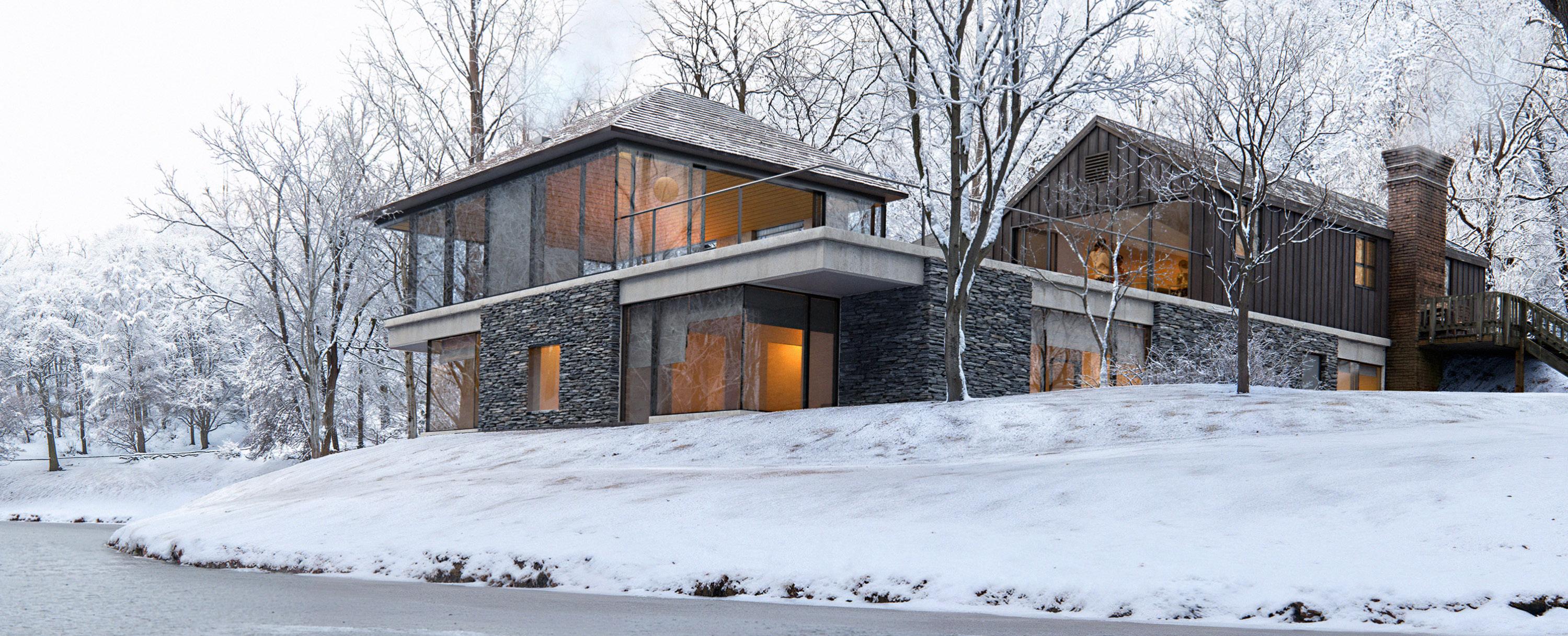 This project is a personal professional project in which I bring sustainability practice into private housing. Nature Within renovates the Howard family’s century-old vacation home near Howard Falls, Pennsylvania, by preserving most of the original envelope and structure to minimize embodied carbon and protect the surrounding forest ecosystem. A carefully placed extension opens the home to the forest, creek, and waterfall while introducing a central winter garden, creating a retreat that balances openness and refuge in dialogue with the landscape.