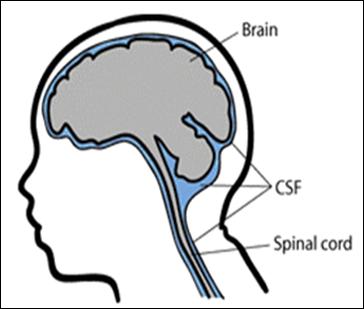 Meningitis is the swelling of the lining of the brain and spinal cord (called meninges, shown in light blue in the image below).