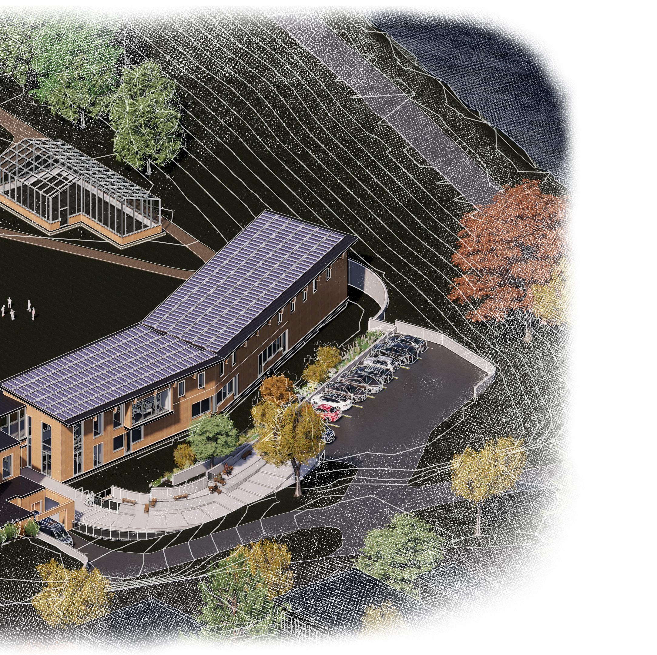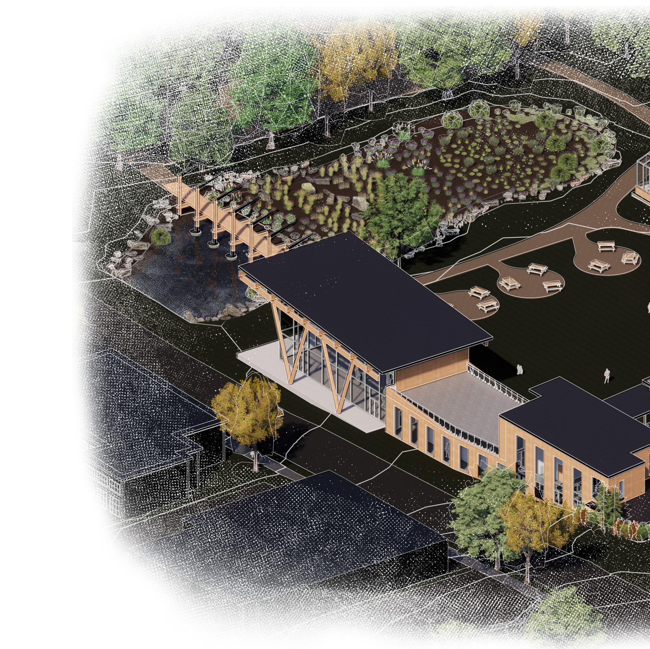 • Rendered perspectives using Enscape & post-production in Photoshop & Illustrator