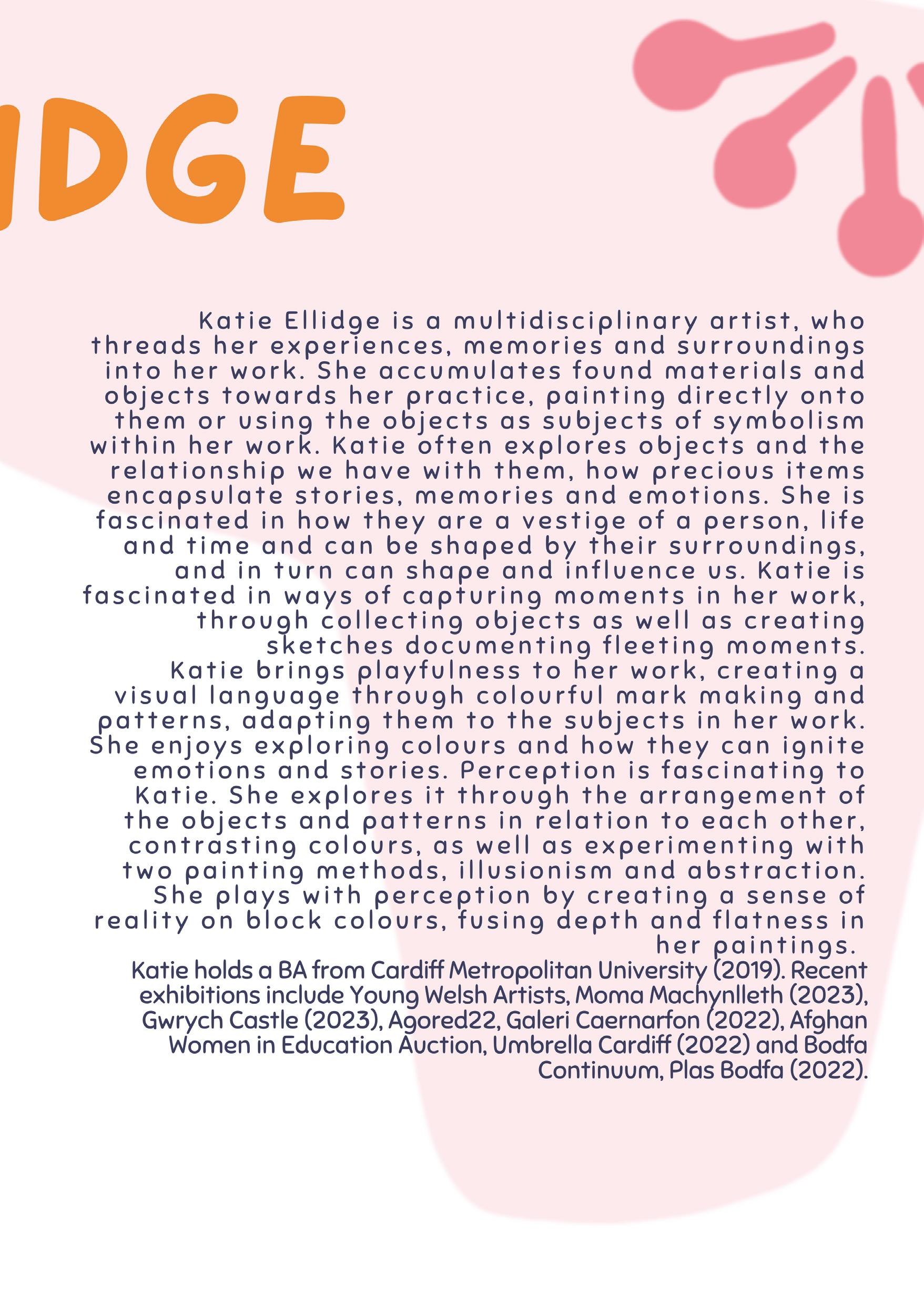 Gwybodaeth a manylion gwaith arddangosfa diweddaraf CARN gan artistiaid ac aelodau CARN, Ffion Evans a Katie Ellidge // Information and works details of latest exhibition at CARN by artists and CARN members, Ffion Evans and Katie Ellidge.