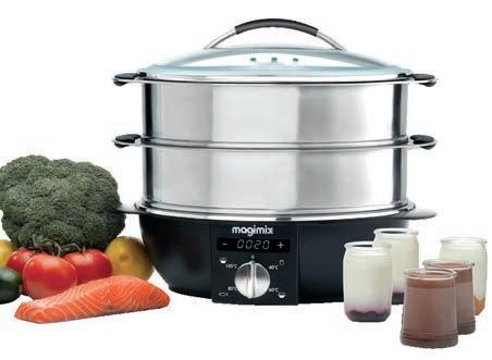Cuiseur vapeur multifonction 1900W. Bol inox multifonction 2L. 2 paniers inox de 5,5L. Support œufs.