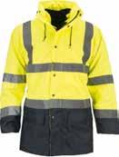 100% scheur- en slijtvaste Poly Oxford. Winddichte en waterdichte PVCcoating. Maten: S - 3XL. Innovatief model, te gebruiken voor meerdere doeleinden. Buitenjas bevat twee handige grote opgezette zakken met klittenband sluitingen en een geïntegreerde capuchon, terwijl de binnenjas afneembare mouwen heeft, een grote telefoon/radio zak met D-ring en printopening voor personalisatie.