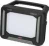 LED-werklamp met 5 m afneembare kabel (H07RN-F2X1.0) met hybride technologie: werking op accu en net mogelijk, ook met automatische omschakeling van net naar accu bij een eventuele stroomuitval. Ideaal voor optimale lichtverdeling en verlichting van grote oppervlakken met niet-verblindende en slagvaste werklamp.