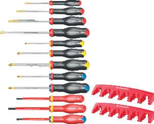 Jeu de 12 tournevis + 2 supports. Dont 3 tournevis isolés 1.000 volts. 321463/D - 1093769