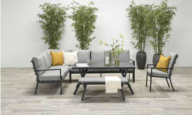 Cadre en aluminium, carbon black • Canapé droit L186 x P76 x H85 cm • Canapé gauche L277 x P76 x H85cm • Table