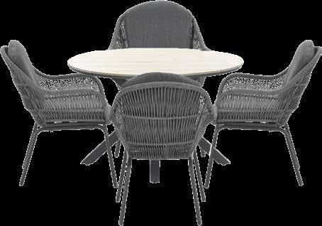 Ø148 x H75cm • Carbon black/ teak Vironwood 680295/S + 4 chaises 'TRITON' l74 x P66 x H86cm • Cordage gris Ø5mm 680297/S
