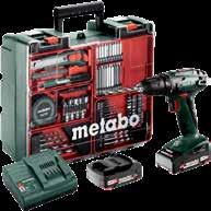 18V • 2 x 2.0Ah • Capacité dans acier 10mm, bois 20mm • 0-450 / 0-1600 t/min • 24 / 48 Nm • Mandrin à changement rapide • Chargeur SC 60 Plus • Avec coffre et 74 accessoires 060893/D