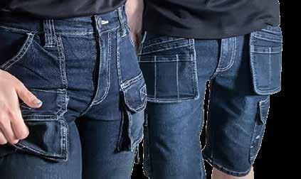 Werkshort comfortabel in stretch jeans die u een ongelooflijke beweegvrijheid biedt • Meterzak en cargozak • Verstevigd op de zwakste plaatsen • 28 - 42 • Denim 399758/D