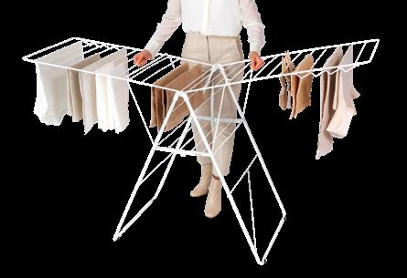Voor groot en klein wasgoed - in hoogte verstelbare vleugels • Ruimtebesparend • Ingeklapt heel compact en makkelijk op te zetten • Wit • Ook verkrijgbaar in zwart