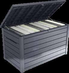 L117 x D45 x H57.5m • Met wielen en handgrepen: eenvoudig te verplaatsen! • Weerbestendig • Kan dienen als zitplaats voor 2 personen • Antraciet 680108/D