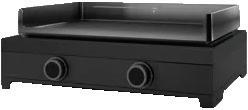 L64 x P55cm x H24cm. 2 brûleurs = 5600W. Plaque de cuisson fonte émaillée. Châssis double paroi acier. Bac a graisse intégré 1,1l. Pour 8 à 10 personnes.
