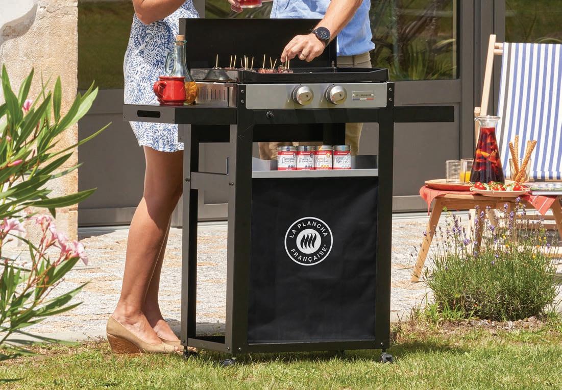 EDITION L92,3 x P40 x H88cm. 2 brûleurs inox 4W. Plaque fonte émaillée inclinable 50 x 35cm. Allumage piezzo mécanique. Récupérateur inox rectangulaire inclus. Chassis en version inox satiné. Chariot équipé de 2 tablettes amovibles. Fonctionne au gaz butane ou propane. 690921/D