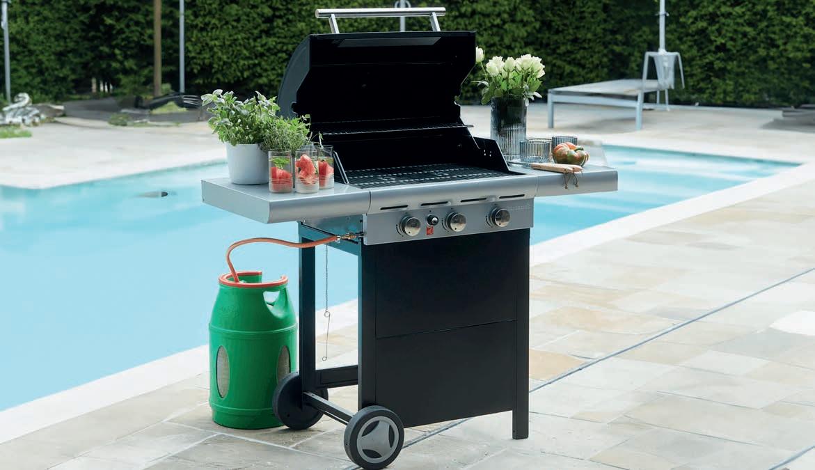 L92,3 x D40 x H88cm. 2 roestvrijstalen branders 4W. Kantelbare geëmailleerde gietijzeren plaat 50 x 35cm. Mechanische piëzo-ontsteking. Inclusief rechthoekige roestvrijstalen lekbak. Frame in gesatineerde roestvrijstalen uitvoering. Trolley met 2 verwijderbare schappen. Werkt op butaan- of propaangas. 690921/D 239€ 349€