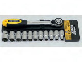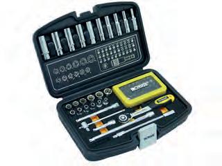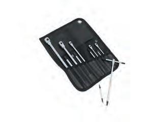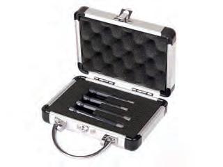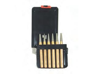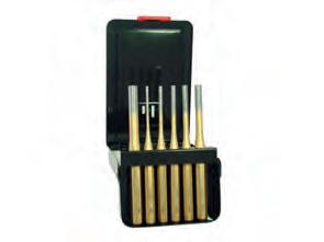 Inhoud : Platte beitel van 150x 12mm en van 125x 10mm. Puntbeitel van 125x 10mm. Doorslagpunt van 120x 10x 3 en van 12 x 10 x 4mm. Centreerpunt 120x 10mm. In metalen koffer.