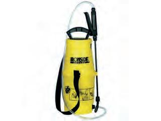 Reservoir uit PE, pomp uit PP, lans uit glasvezel, slang uit PVC.