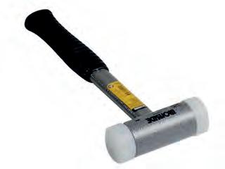 Stalen kop en steel. Witte nylon slagkoppen. Ergonomische handgreep met rubberen bescherming.