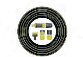 6-lagen slang. Niet verdraaien. Voedselkwaliteit. Maximale druk van 30 bar. Hoogwaardige twee-componenten connectoren : sproeier, connector, waterstop connector, tape adapter.