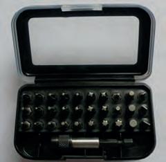 Inhoud : Platte beitel van 150x 12mm en van 125x 10mm. Puntbeitel van 125x 10mm. Doorslagpunt van 120x 10x 3 en van 12 x 10 x 4mm. Centreerpunt 120x 10mm. In metalen koffer.