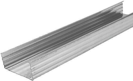 50 x 35 mm. Gegalvaniseerd staal. Gebruikt als horizontaal profiel op vloeren en plafonds voor het bevestigen van scheidingswanden.