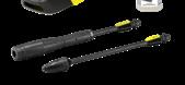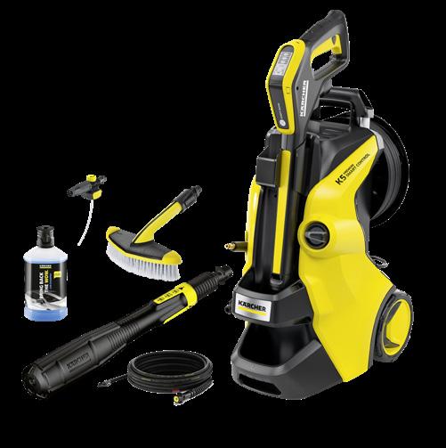 Marche/arrêt automatique • 2 embouts (Tornado + Power Speed) • Système Click & Clean • Buse Tornado • Buse Powerspeed • Vaporisateur mousse 0,5l • 9 m de flexible "soft" • Poignée pistolet G4 • Chariot de transport • Enrouleur de flexible intégré