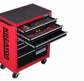 GEREEDSCHAPSWAGEN 7 LADEN 348-DELIG 'KRT653004' Niets zo eenvoudig en handig als een gereedschapswagen die al volledig gevuld is met de meest gebruikte handgereedschappen en accessoires. De complete 348-delige set bevat verschillende schroevendraaiers, sleutels, tangen, dopsleutels, schroeven, en meer. Zo heb je alles bij de hand en kan je onmiddellijk aan de slag • Bovenste werkblad in EVA-foam en 7 ruime lades met een draagkracht tot 25kg • 2 vaste wielen en 2 zwenkwielen voor meer wendbaarheid • Met slot en reservesleutel • L66 x DP40 x H87cm 069032/D