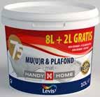 14 29 95 3995 69 95 109 95 7 65 8 90 handyhome.be également surET TOUT DEVIENT POSSIBLE PEINTURE MURALE PROMO 25KG Rendement 100m2 900950/S - 1,20/kg MUR & PLAFOND 8L + 25% GRATUIT Rendement maximum • Très haut pouvoir couvrant • Blanc 800582/D - 6,99/kg *Plus d’informations sur les produits participants, les dates de promotion, le pourcentage de remise et d’autres conditions dans le magasin. PROMO*-25% sur la gamme Levis Vivez vos couleurs *Infos et conditions en magasin PROMO*-25% sur la gamme HAMMERITE Disponible en différentes couleurs et degrés de brillance PROMO*-25% sur la gamme POLYFILLA PROMO*-25% sur TOUS LES OUTILS DE PEINTURE FIX ALL HIGH TACK 290ML La colle mastic la plus puissante • Parfait pour coller des matériaux sur toutes surfaces, même humides • Disponible en différentes couleurs 177072/D 26.38/l *Infos et conditions en magasin *Infos et conditions en magasin
