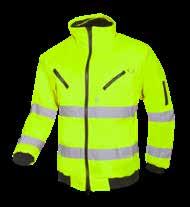 100% polyester weefsel met 100% PU coating; ± 195 g/m² • Afneembare fleecevoering en mouwen • Waterdicht • Groot ademend vermogen • Voorzien van vele handige details, zoals het mica zakje op de borst en een verlengd rugstuk