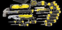 Ruime soft bag met 8 compartimenten en 36 stuks Stanley handgereedschap • Inhoud; 1 fiberglass klauwhamer, 1 magnetische waterpas, 1 rolmaat 5m, 1 waterpomptang, 1 set van 10 imbussleutels, 8 verschillende schroevendraaiers, 1 afbreekmes (met reservemesje), 1 set van 10 reservemessen voor afbreekmes en 2 klemmen 393985/D