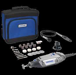 X L 5 POWERTOOLS 94 95 109 45 124 95 139 95 20€ CASHBACK* 519 00 65000 219 00 299 00 109 95 174 95 124 95 18695 2195 3295 BESTE PRIJS - GARANTIE - ADVIES OP MAAT - SERVICE - GROOTSTE KEUZE - KWALITEIT DREMEL® 4250KA Onbegrensd vermogen, ultieme ervaring nu met extra flexibele as in deze promotiekit • 175W • 5000 - 35000 t/min • Elektronische feedback • Verbeterde ventilatie • Verminderde vibratie • Afzonderlijke aan/uit schakelaar die snelheidsinstelling ‘onthoudt’ • Met 35 accessoires, EZ SpeedClic, soft bag en flexibele as 311240/D DREMEL® 3000 (3000-2/25) Het perfecte allround multigereedschap, geschikt voor zowel DIY als decoratieve klussen • 130W • 10000 - 33000 t/min • Variabele snelheid • Innovatieve EZ Twist-neuskap • Spantangvergrendeling • Softgrip • Met 25 accessoires, flexibele as, snijgeleider, softcase, quick start gids, accessoire-informatiekaart en testmaterialen