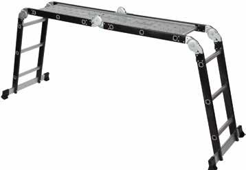 4 x 3 marches • Usage universel: en A, échelle simple ou plateforme de travail • Double plateforme galvanisée antidérapante incluse • Ht. totale 3,37m • Double 1,64m • Ht. échafaudage 0,95m 378149/S