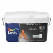 Couche de fond isolante blanche, à base d'eau, pour murs intérieurs et plafonds • Applicable sur plâtre, plaques de plâtre, fibre de verre et aussi sur couches de fond anciennes, réparées ou en bon état • L'utilisation de ce primer évite les différences de brillance dans les couches de finition et isole les différences d'absorption du support sur tout l'assortiment* PROMO* - % Colour * Infos et conditions en magasin. SUR LEVIS AMBIANCE LEVIS AMBIANCE vous offre un large assortiment de teintes uniques, pour votre propre style Ambiance Effet Béton Ambiance Tablo Ambiance Metallic Ambiance Murprimer Ambiance Mur disponible en extra mat ou satin Ambiance Plafond Ambiance Effet Craie Ambiance Lak disponible en mat, satin ou high gloss 30 LA PEINTURE DE LA MAISON *Voir conditions en magasin 5L +20% 951123/D - 13,32/L 5L +20% 951122/D - 13,32/L 10L +20% 951126/D - 12,49/L 10L +20% 951125/D - 11,66/L