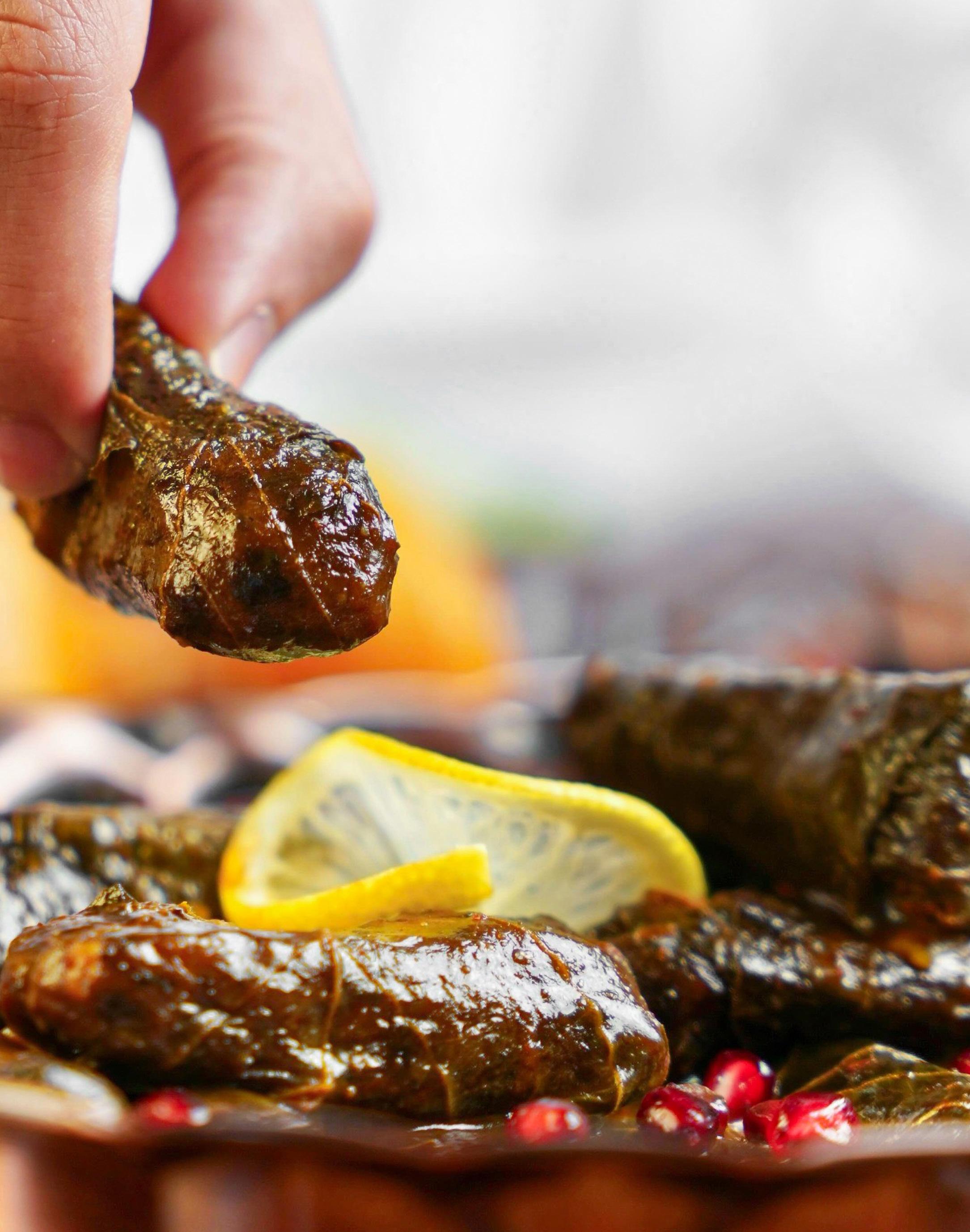 Jag köper vinblad som precis plockats från rankor som slingrar sig över stenmurar, ris odlat i närheten, syrliga torkade tranbär och färsk lammfärs från trakten. Här i det lilla köket där vinden smyger in genom öppna fönster, lagar jag dolmar på drusiskt vis.