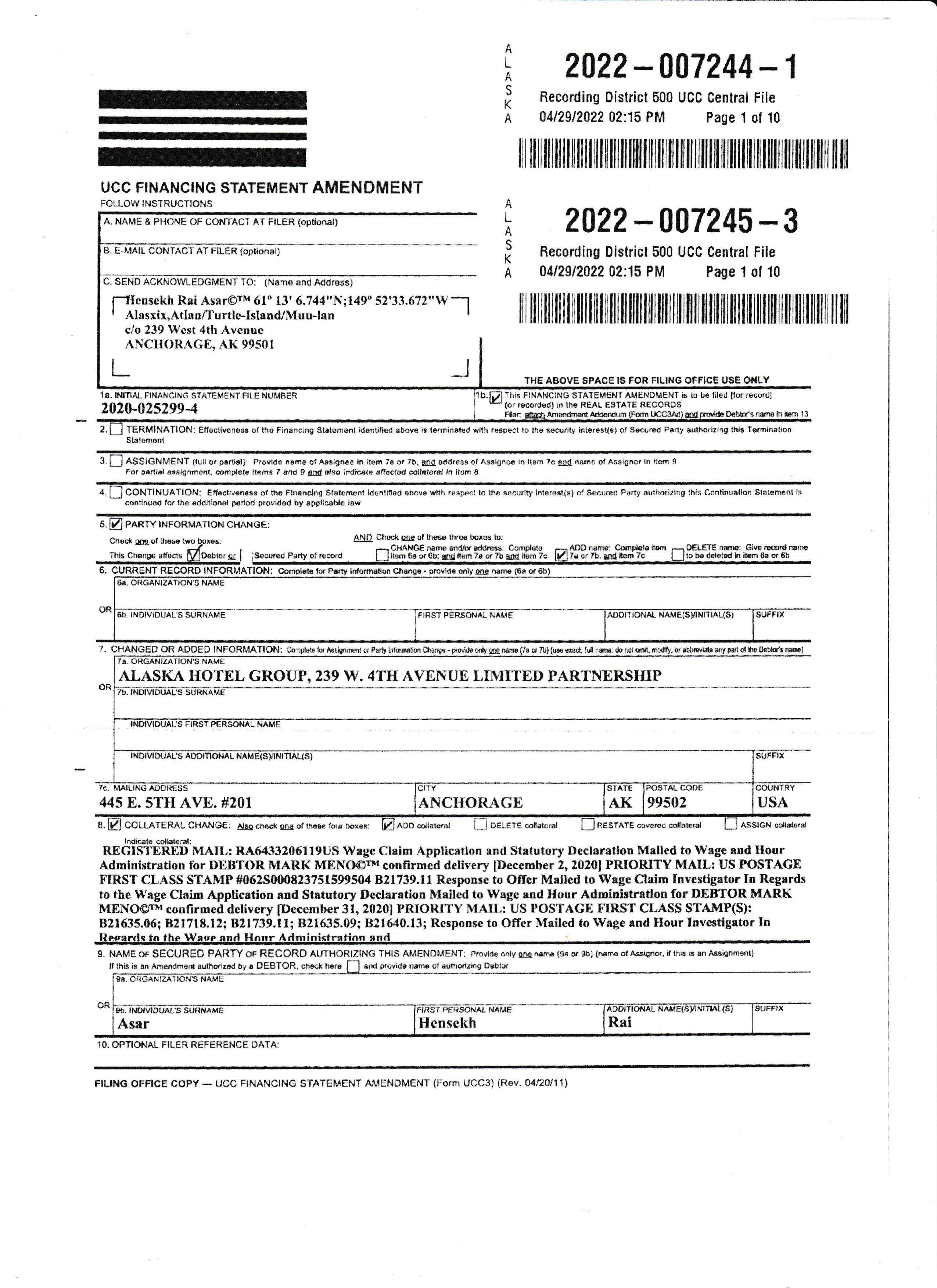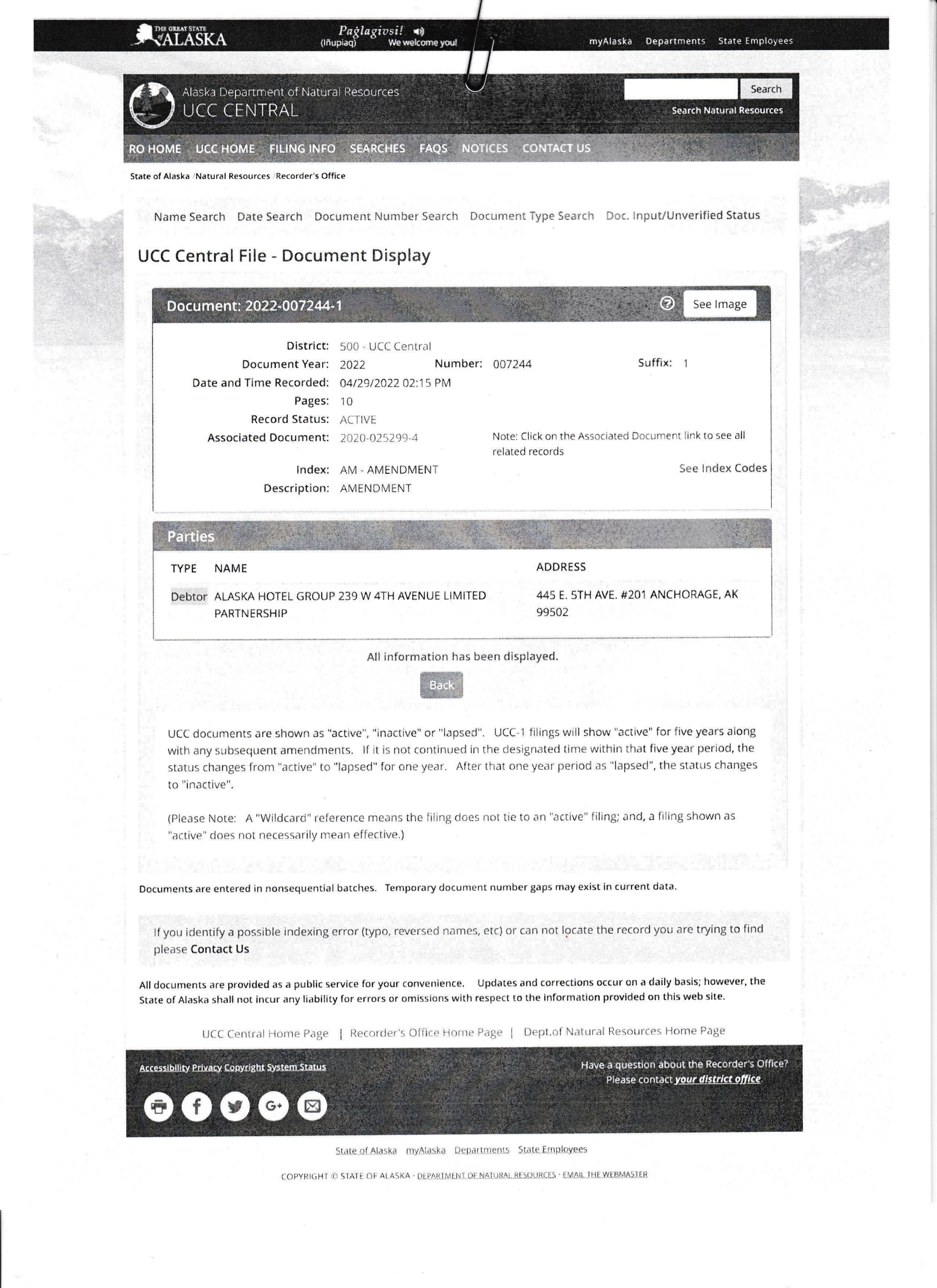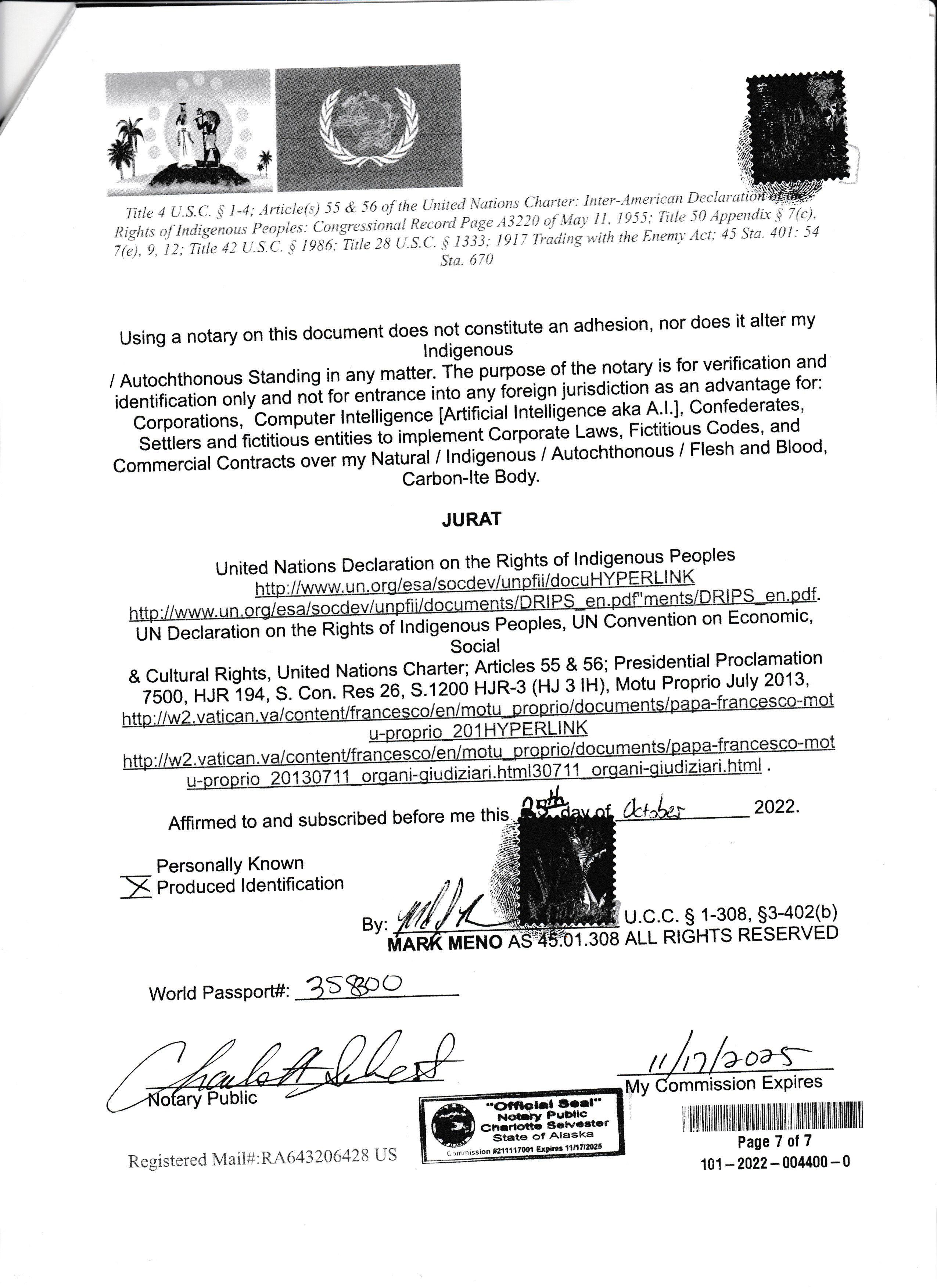 REQUEST FOR CERTIFIED COPY OF ORIGINAL LAND PATENT MAILED TO US DEPT OF INTERIOR BLM FEDERAL OFFICE
