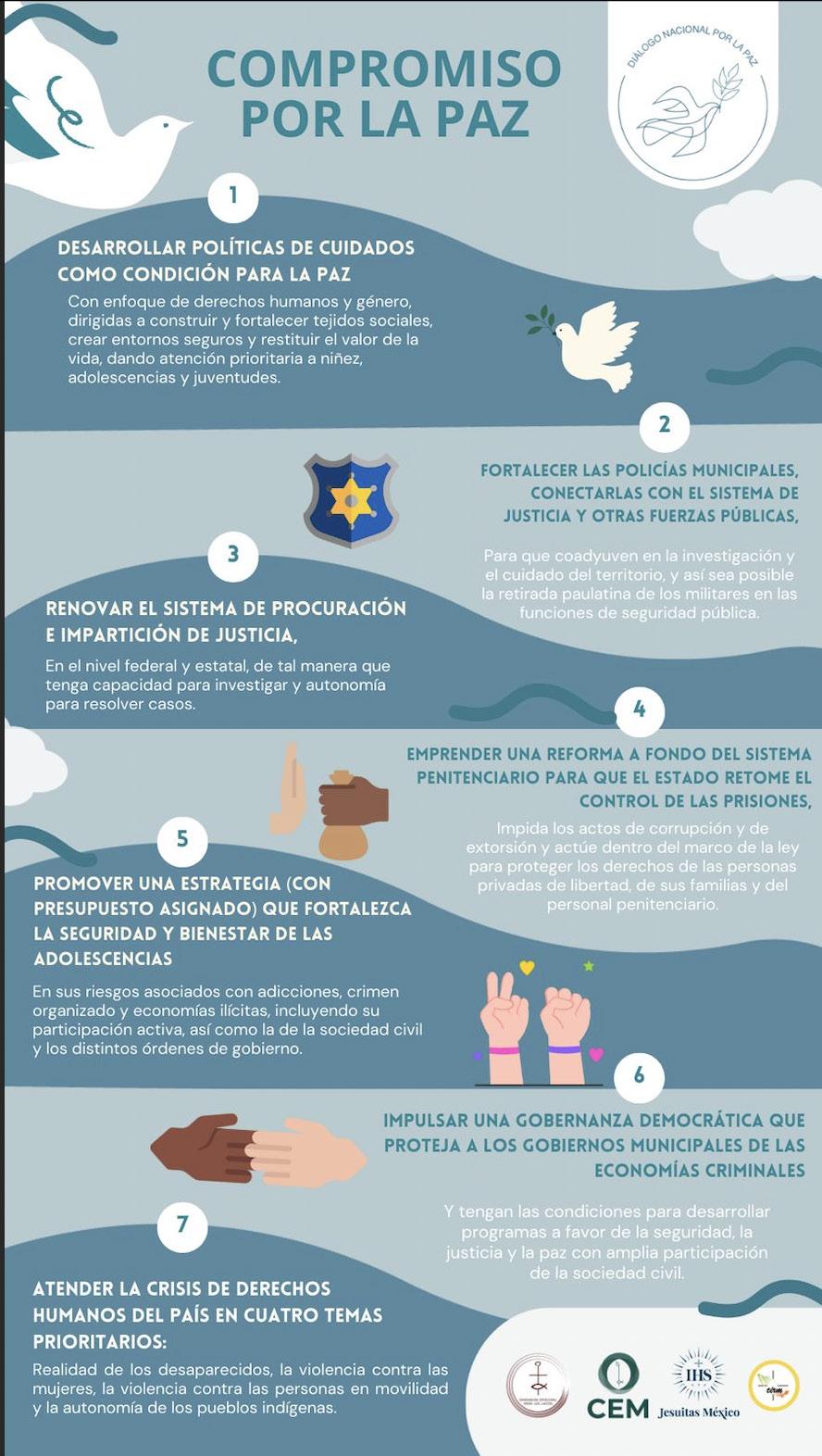 Diálogo Nacional por la paz, según su propia descripción (www.dialogonacionalporlapaz.org.mx) es un “movimiento diverso, formado por personas decididas a construir la paz en México. Nuestra comunidad está compuesta por jóvenes, mujeres, hombres, víctimas de la violencia, pueblos indígenas, trabajadores, adultos mayores y representantes de comunidades de todo el país. Nuestro Compromiso es sólido: persistiremos en establecer las condiciones fundamentales para la paz”.