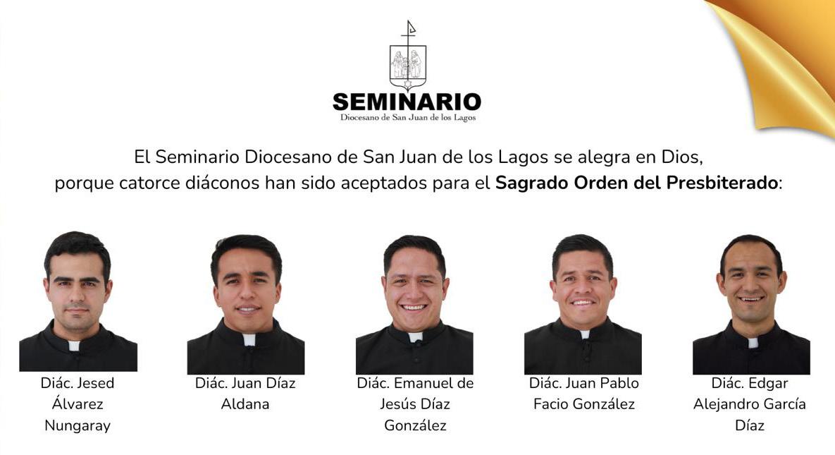 Por otro lado, compartió la alegría que vive la Diócesis de San Juan de los Lagos al ser aceptados al Orden Sacerdotal 14 diáconos, quienes por gracia de Dios recibirán el sacramento el próximo sábado 20 de abril a las 11:00 hrs., en la Casa de Pastoral Juan Pablo II, en San Juan de los Lagos, Jal.