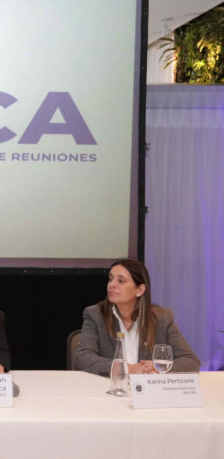 La presentación fue encabezada por Patricia Durán Vaca, presidenta de AOCA, quien dijo que este año van a participar más de 12 países como hosted buyers, además de los expositores que incluyen a empresas y destinos. Sobre este punto hay que destacar que el mayor porcentaje corresponde a Brasil con el 35, 7 %; seguido por Estados Unidos con el 15,7 %. La otra mitad se reparte entre Uruguay, España, Colombia y México, entre otros. Entre las particularidades de esta edición, comentó que tuvieron en cuenta la sustentabilidad y los eventos deportivos. Sobre el primer ítem, indicó que apuntan no solo a reducir la huella de carbono, sino también a certificaciones por medio de la AHT, con Hoteles Más Verdes. En esta línea, en la presentación, Fernanda Rodríguez, directora ejecutiva de AOCA, remarcó que vienen con el proceso de reconstrucción del segmento de turismo de reuniones en la postpandemia. “Si bien el año