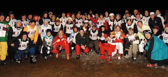 die Teams des Yacht Club de Monaco, der Royal Yacht Squadron (Peter Nicholson, der Bruder des GYC Commodores George, war gerade Vorsitzender geworden) und des GYC beim Riesenslalom auf die Piste. Doch nicht die allerbesten Skicracks können hier gewinnen. Denn es gilt, zwei Läufe in möglichst derselben Zeit zu absolvieren. So kommt es, dass selbst ein Läufer von den Bahamas dank seiner beiden auf die Sekunde genau gleichen Läufen die gesamte Konkurrenz hinter sich lassen konnte.