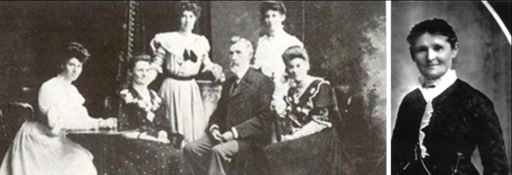 Photos: The Simpson Family - From left, Ethel (Mrs Thompson), Mrs Sarah Simpson (nee Mills), Minnie (Mrs Somerville), William Hamilton Simpson, Effie (Mrs Seward), Daisy-Ella (Mrs Barnett). Sarah Lester Simpson (née Mills).