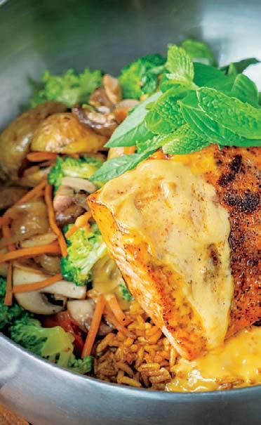 Elevate lunch by playing with flavors, textures, and colors. Utilize common and trendy proteins like chicken, steak, and sustainable seafood or plant-forward options. Pickle and char vegetables for seasonal crunch and flavor. Toast nuts, seeds, and grains for satisfying bites, and dress to impress with lemon tahini, green goddess, or black garlic vinaigrettes. Artfully drizzle and garnish with truffle honey, infused oils, and microgreens.