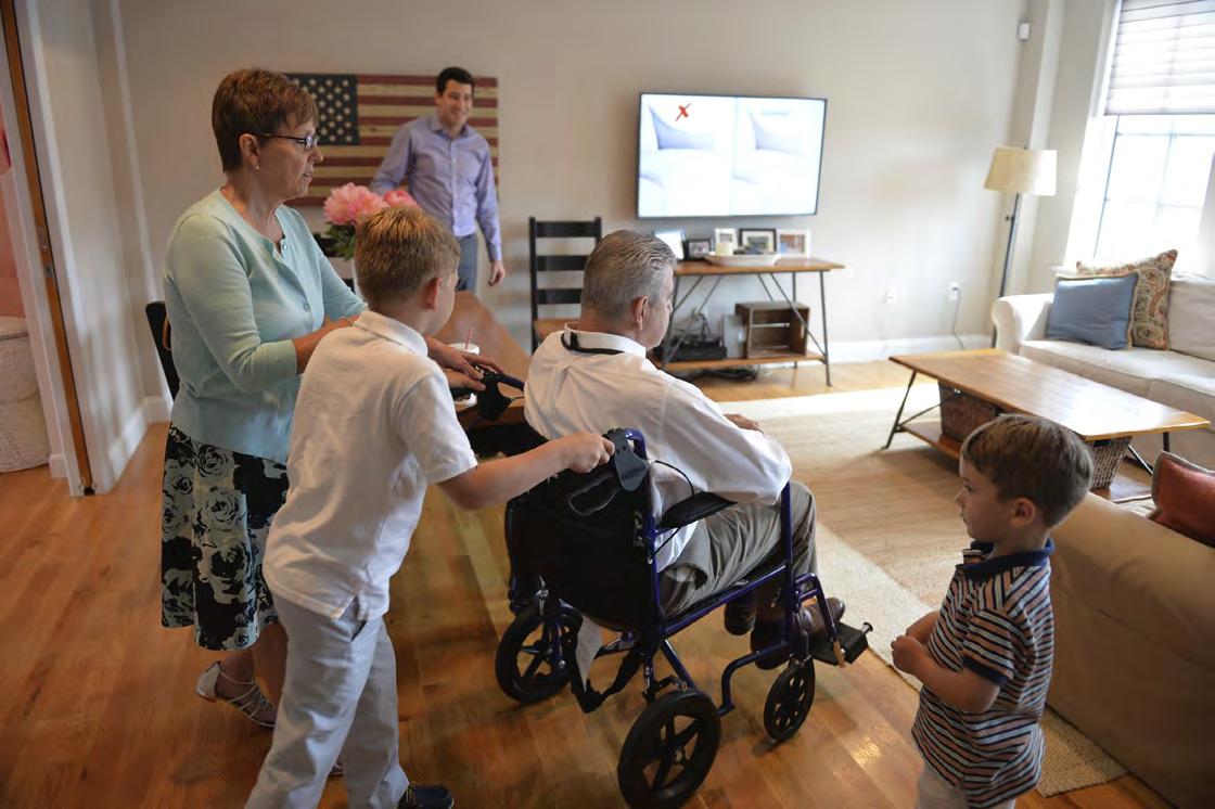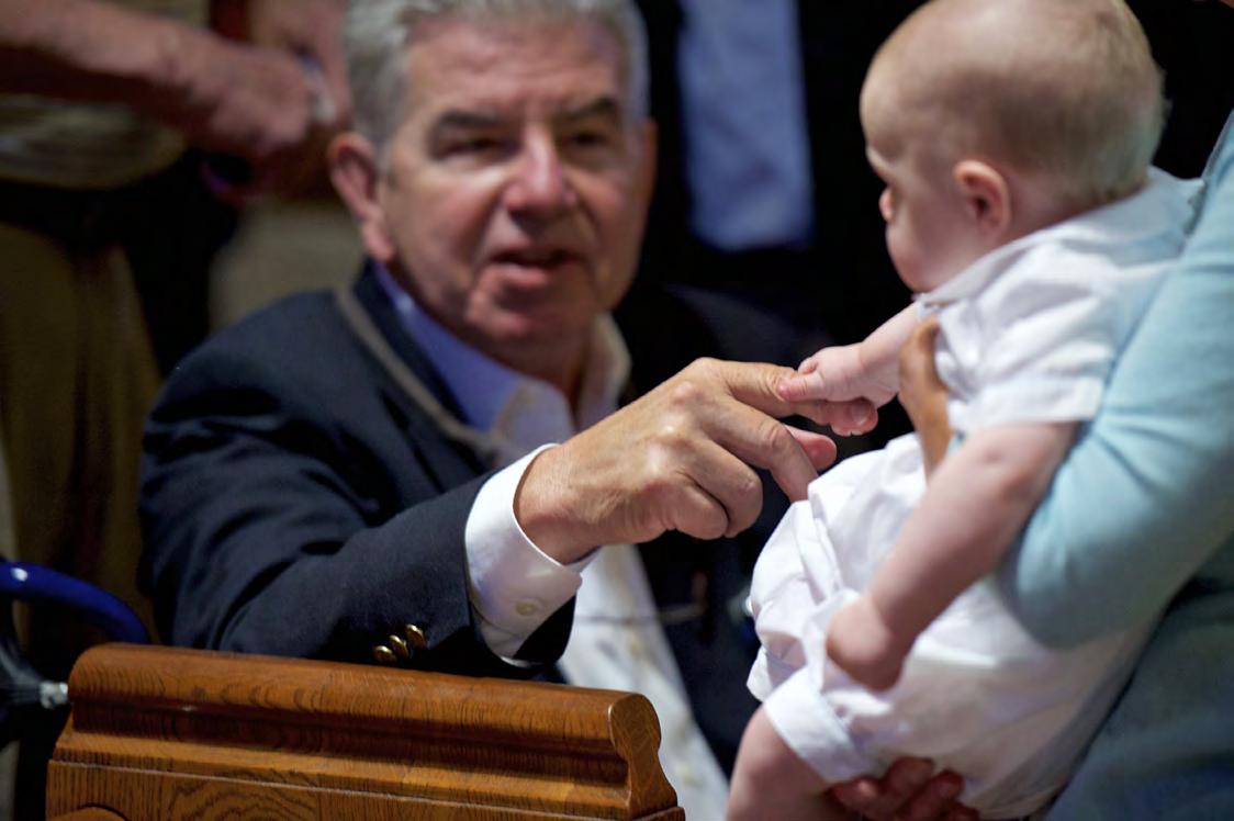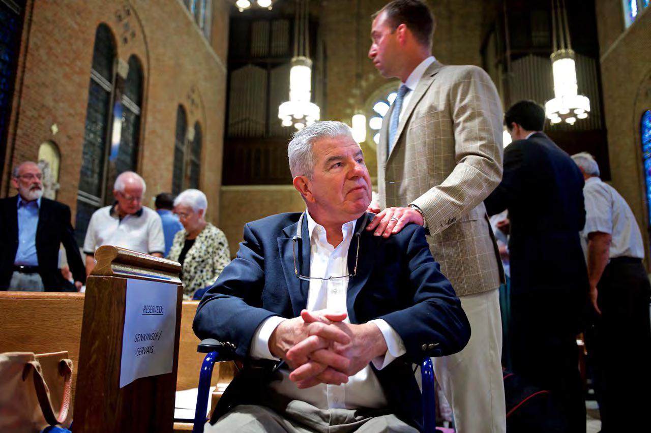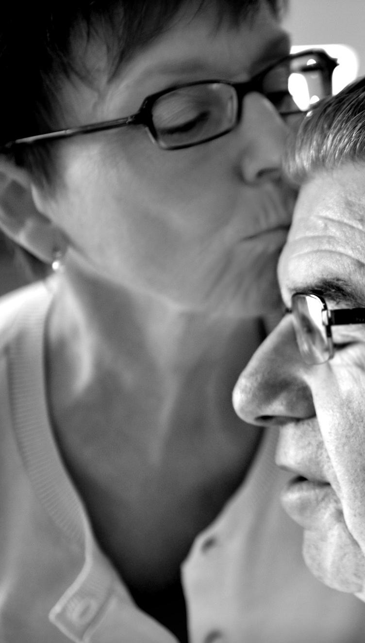 Commissioned by Carbone Smolan, Doug completed a series of shoots with patients and their families, a project that called for incredible sensitivity and compassion. Pictured on this spread and the next are PSP patient Pierre Gervais and his wife, Jocelyn, whom Doug photographed with their family during the baptism of their granddaughter and a celebratory meal with their extended family.