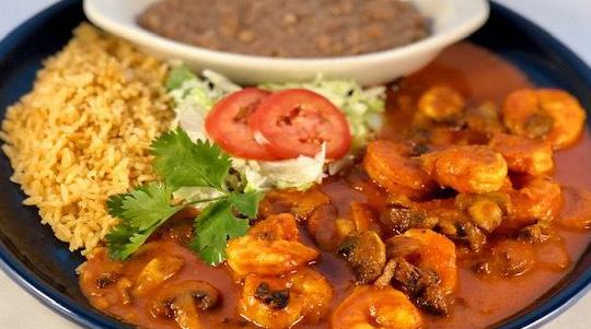 Perfectly cooked shrimp sautéed in a spicy salsa roja. Served with rice and beans. 22.99