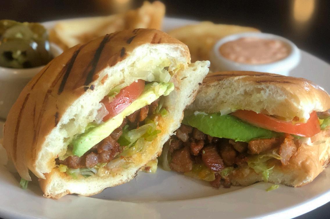 An Authentic Mexican style sandwich, filled with your choice of g rilled steak, grilled chicken or adobada pork , avocado, jalapeños, onion, lettuce, tomato and mayonnaise. All served up on a warm toasted bun. Served with a side of fries, spicy fry sauce and jalapeño slices. 16.99