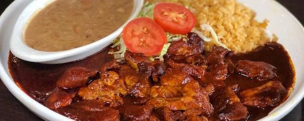 rojo sautéed chicken , combining the flavors of peanuts, chile, and traditional Mexican ingredients. Served with rice and beans. 18.99